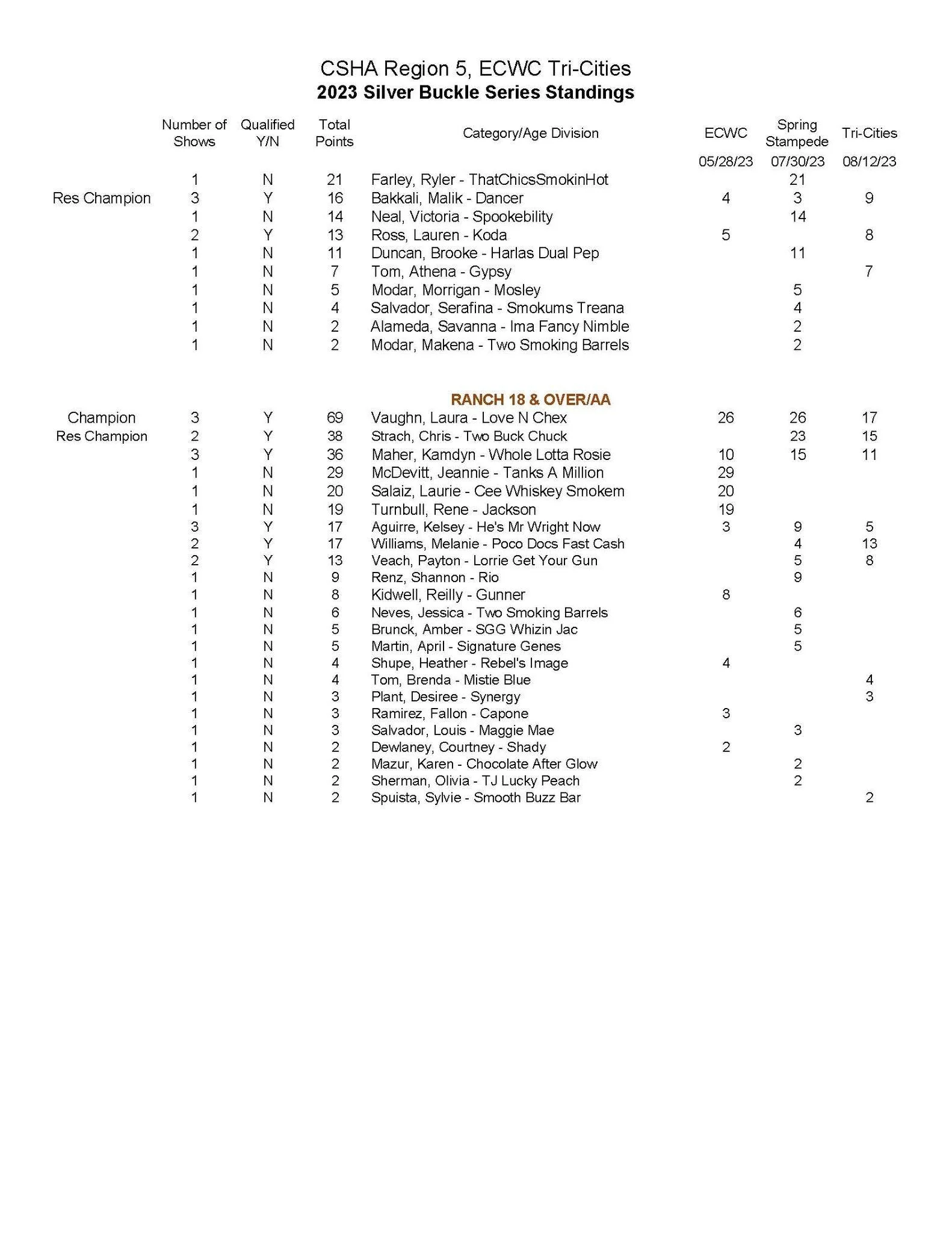 Silver Buckle Series Standings